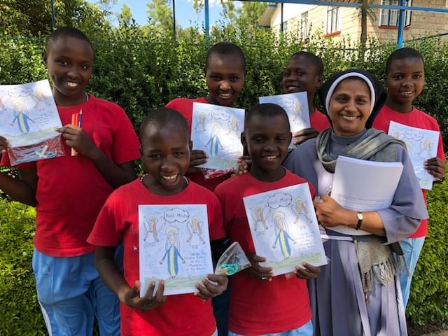 Mary Queen of Angels students send their books about the rosary to St. Clare Centre.